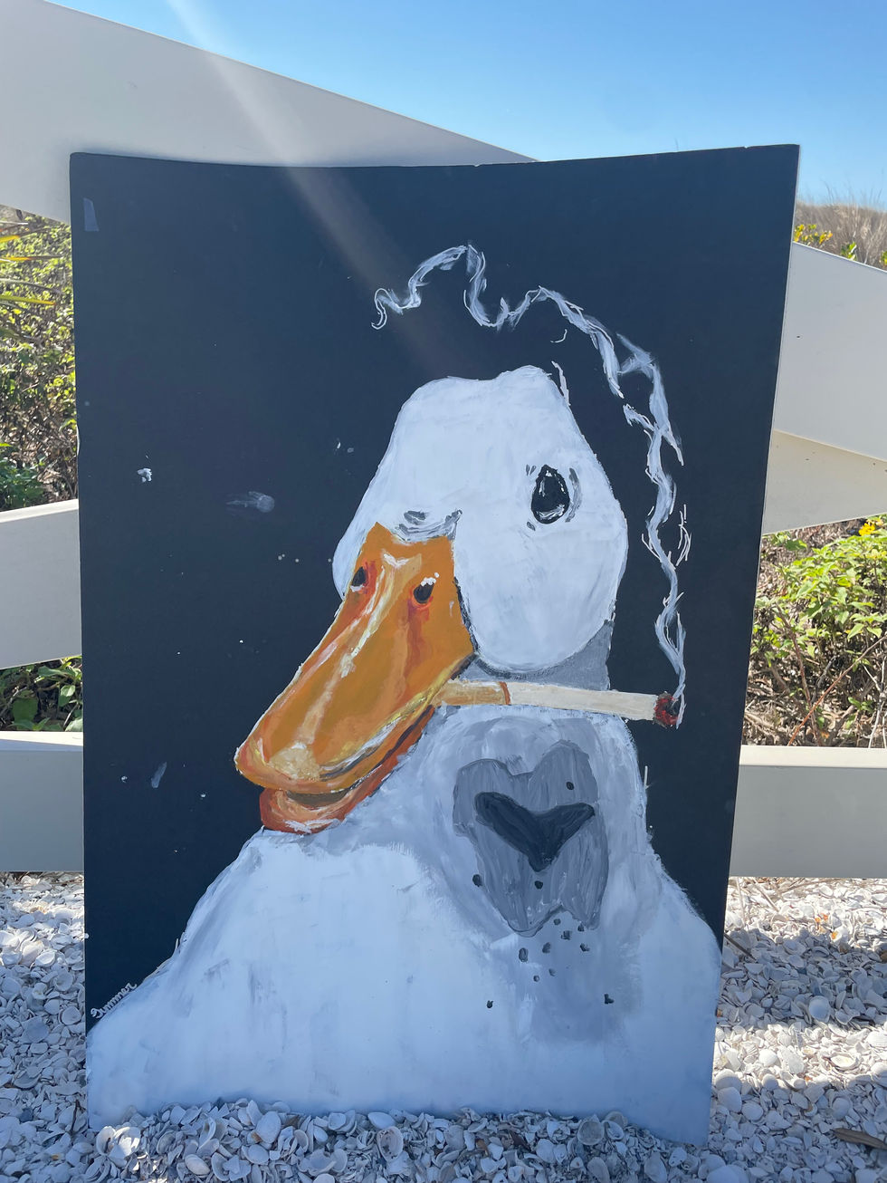 A series of paintings featuring ducks, including images of ducks with unique markings and on a black background.